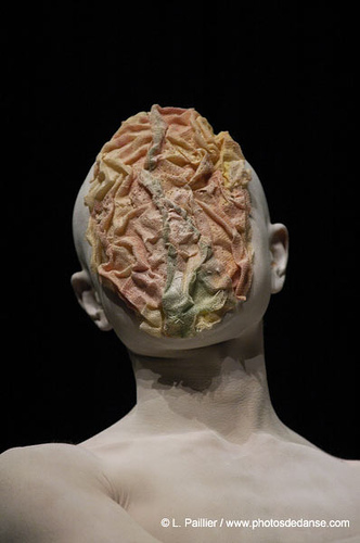 Pour combler le tout, une simiesque reconnaissance fût jouée lors du salut des danseurs, lesquels perpétuaient encore des mouvements made in butoh… leur délicatesse, leur respect du temps qui vient de s’écouler doucement ont été brusquement violés par une possible programmatrice ou directrice artistique toute habillée de noir, guindée, au chignon sévère et luxueux aguichée d’un assistant trop grand pour elle. Ce fût donc le moment des remerciements. Le public applaudissait jusque là plutôt « calmement », docilement (il se peut que je projette, soit.) Et quand ce fût donc la remise des prix, un bouquet de lys très encombrant pour le « vieux » danseur à reconnaître et un lys pour chaque jeune danseur, le rituel reconnu provoqua instantanément un tôlé d’applaudissement, brouillant les cadences des danseurs bien embarrassés de ces fleurs cassantes. Le code de reconnaissance fût établi, tout le monde se sentit confortable pour effectuer une quelconque standing ovation. Les amis de l’opéra (les gens qui payent cher pour du Spectaculaire) et d’autres habitués du rituel furent donc comblés, « on avait vu un grand nom du bûto ».