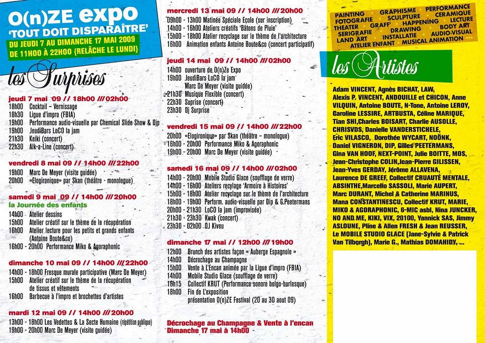 Voilà, l’organisation de O(n)ZE expo me prend mon temps, mon ventre et mes regards, et tant mieux.