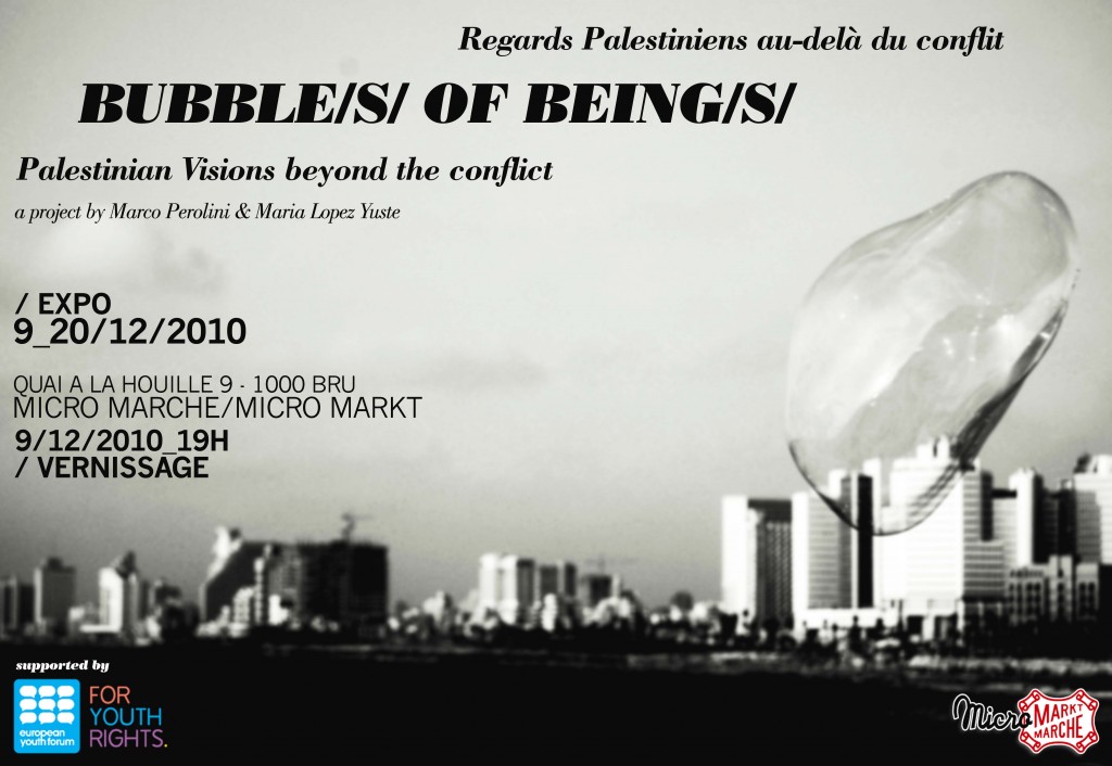 the expo of our little photo project in Palestine (Bubbles of Beings) will be from 9-20 Dec at Micro Marche, near St Catherine, Brussels. Flyer is attached….