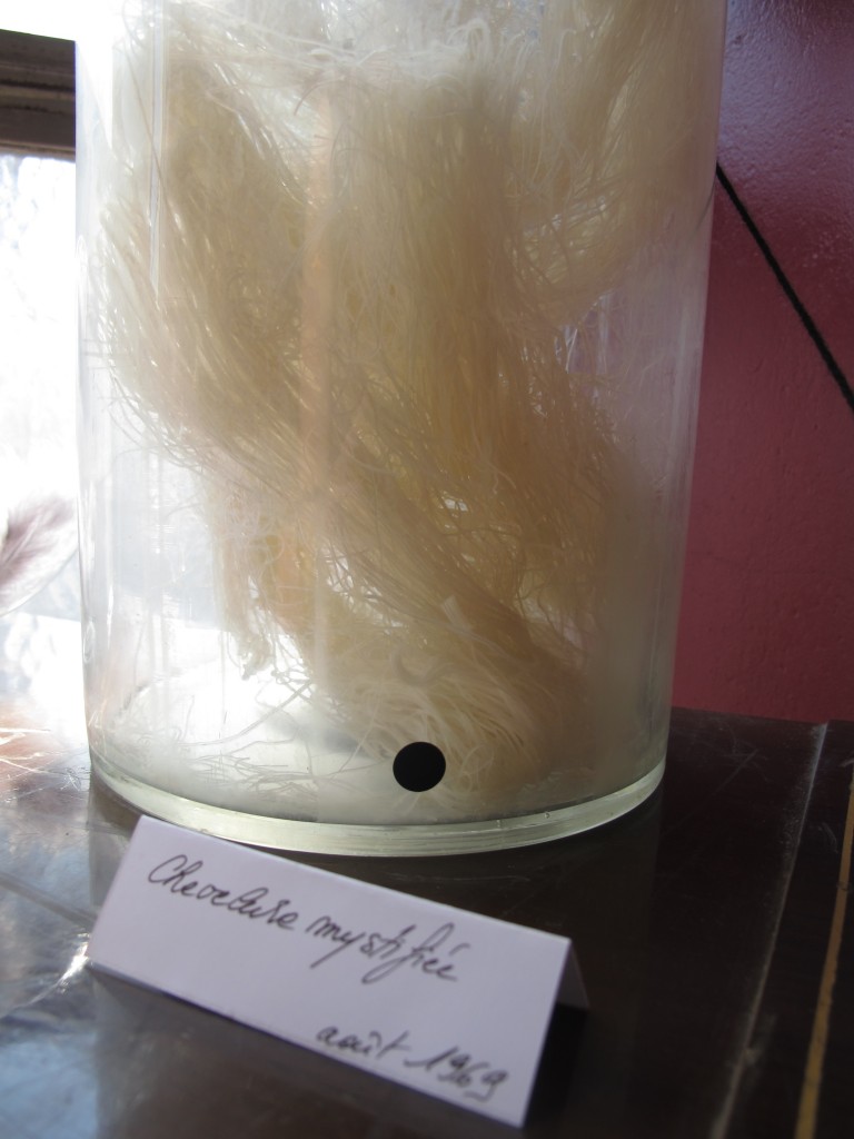 J’y ai installé un cabinet de mes curiosités.. des valeurs et des choses de l’ordre du symbolique, de la conservation vaniteuse et du jeu avec les choses qui meurent et qui ne disent pas grand chose. On peut s’assoir et se confronter. On peut ajouter ce qu’on y aurait placé. On peut sentir l’odeur des putréfactions.