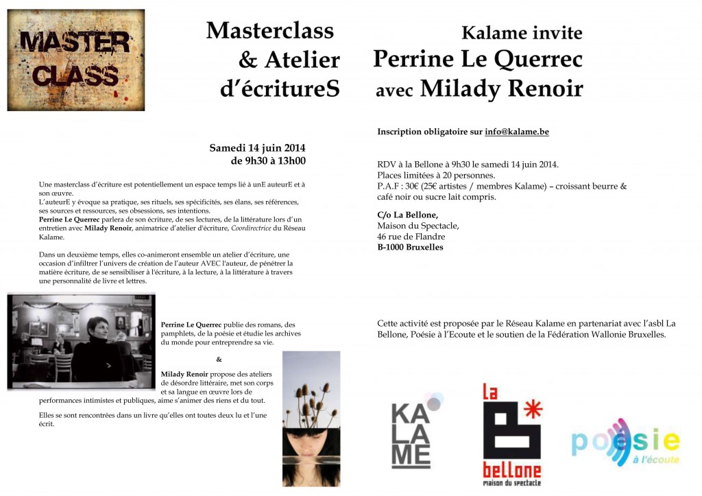 Masterclass et atelier d’écriture avec/entre Perrine Le Querrec & Milady Renoir @ La Bellone