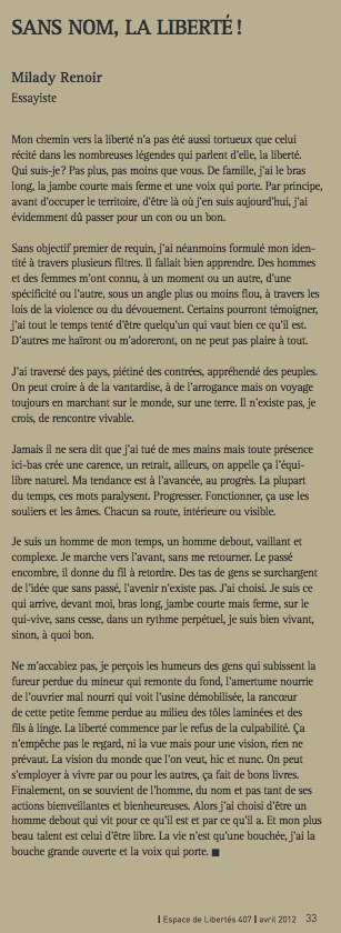 J’écris de temps à autre pour Espace de Libertés, la revue du Centre d’Action Laïque.