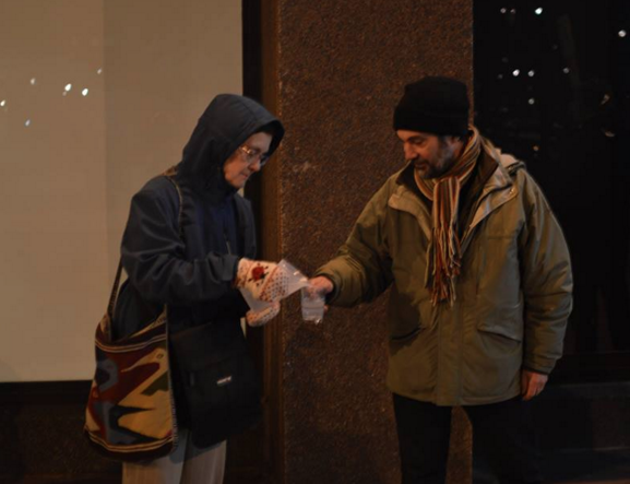 Une trentaine de sans-papiers et de citoyens solidaires ont formé une chaîne humaine près de l’Office des étrangers pour se passer de l’eau et ainsi remplir des récipients. Les participants ont ensuite versé ensemble de l’eau sur le poème pour le révéler.