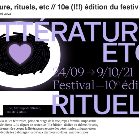 17 août 202130 septembre 2021 MiladyRenoir Festival Littérature, Rituels, etc. – Lille, 24-26 septembre 2021 (10ème édition)