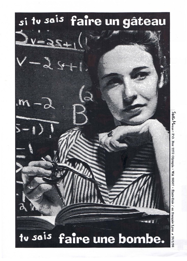Chacune apporte (dans un désordre affectif aléatoire) :- une boisson alcoolisée ou douce, un liquide mielleux, un racleur de giron…ET/OU- un mets délicat (ex. : une cuve de tartiflette (bonne blague), une barrique de choucroute d’Obernai, une salade verte-rouge-jaune, un radis noir, un truc qui ne fait pas grossir, une recette de grand-mère, un truc supercalifragilisticexpialidocious, une pitance de l’épicerie de nuit…),ET- UN TRUC comme par exemple: un morceau joué par une fanfare de Lesbos, une DJette, un instrument de musique (le piano à queue serait un peu prétentieux et hautement séditieux (pour la queue), un objet fétiche, un souvenir fabuleux, un coin de bottin-potin, un tarot, une idée de débat, une idée d’ébats, un OBJET d’enfance, d’adolescence, une bonne blague, une ironie, une poésie, une nostalgie, un concept, un extrait de LIVRE écrit par quelqu’un.e, un TEXTE de soi, un recueil de poème du 12ème siècle, un extrait de film, un carrousel de diapos (bon, pas trop), une nouveauté dont vous seriez la (ligne) médiatrice, autour de laquelle vous apporteriez tenants et aboutissements, une EXPERIENCE, un souvenir câlin ou une claque déclic, un truc à nous raconter, une anecdote du matin, un paradoxe du soir, une chose à partager pour faire jurisprudence ou table rase…