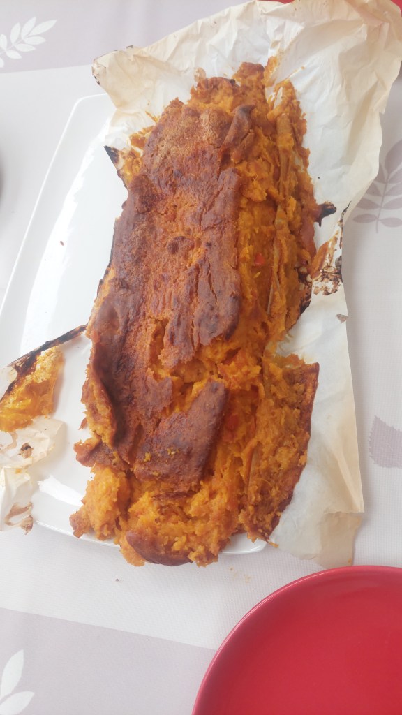 Y avait des crêpes, des couques et un gâteau volcan patate-douce-potiron-coco qui a eu la cuisson douloureuse mais la dégustation heureuse.