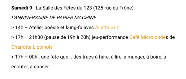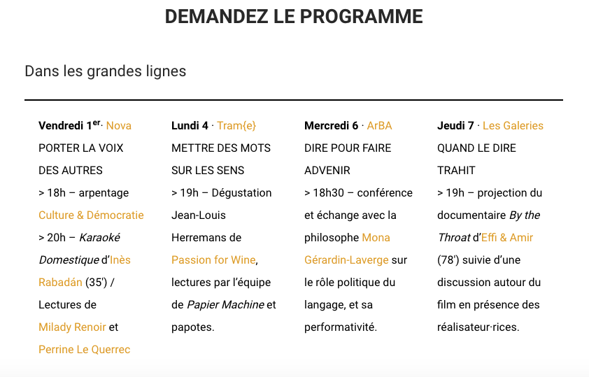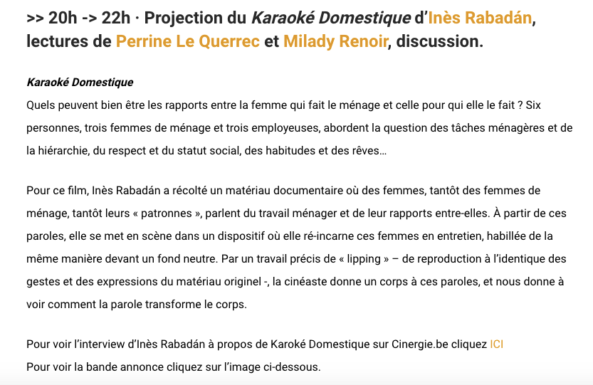 Voilà qu’avec Perrine le Querrec et Ines Rabadan, on fera gorges et cordes le 1er décembre au Ciné Nova (tiens, d’ailleurs, le NOVA doit être racheté par NOUS (par ici pour coopérer) pour éviter qu’un tel lieu meetique ferme à Bruxelles #BruxellesGentrifieToiLeCul)