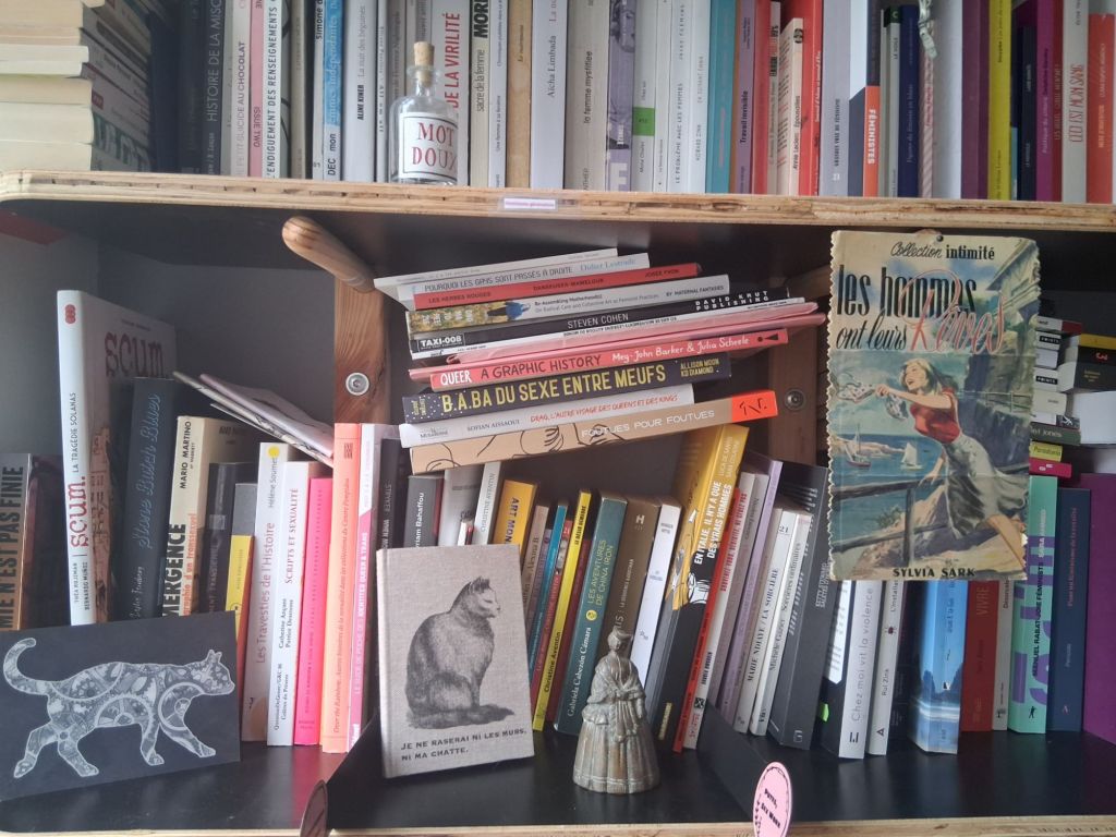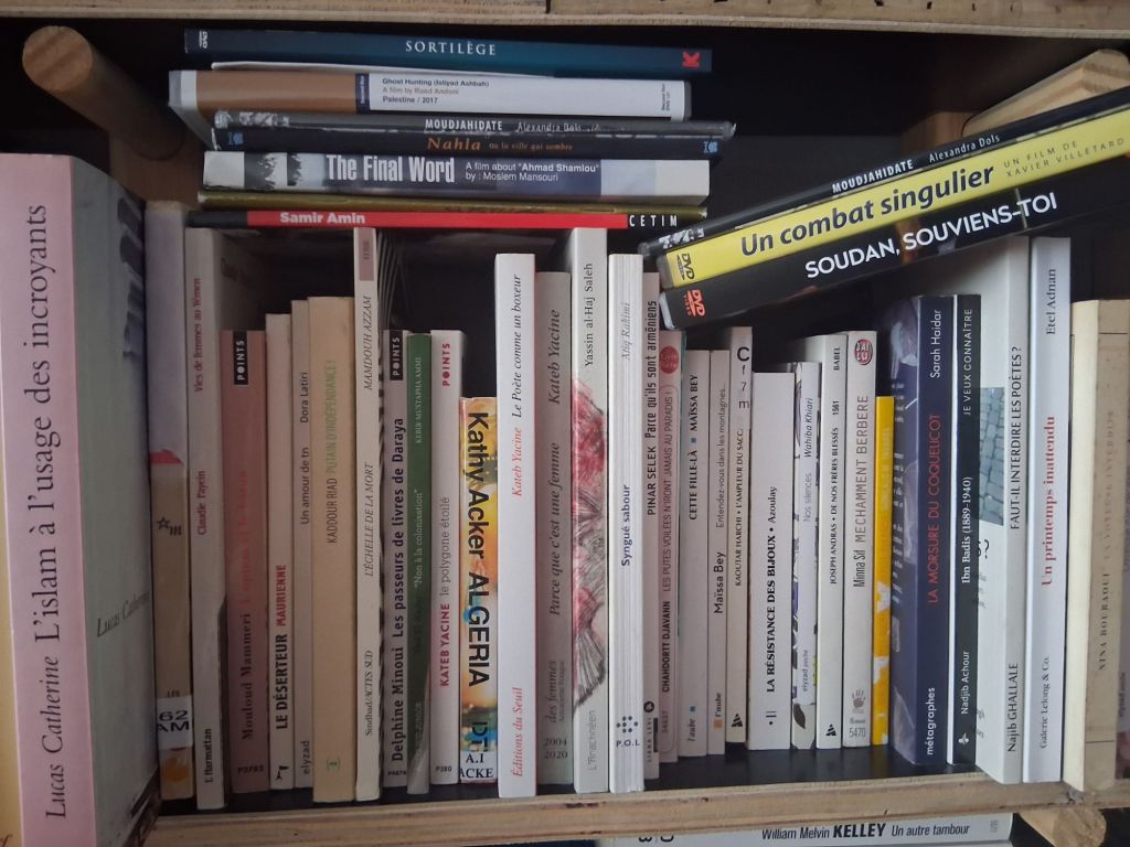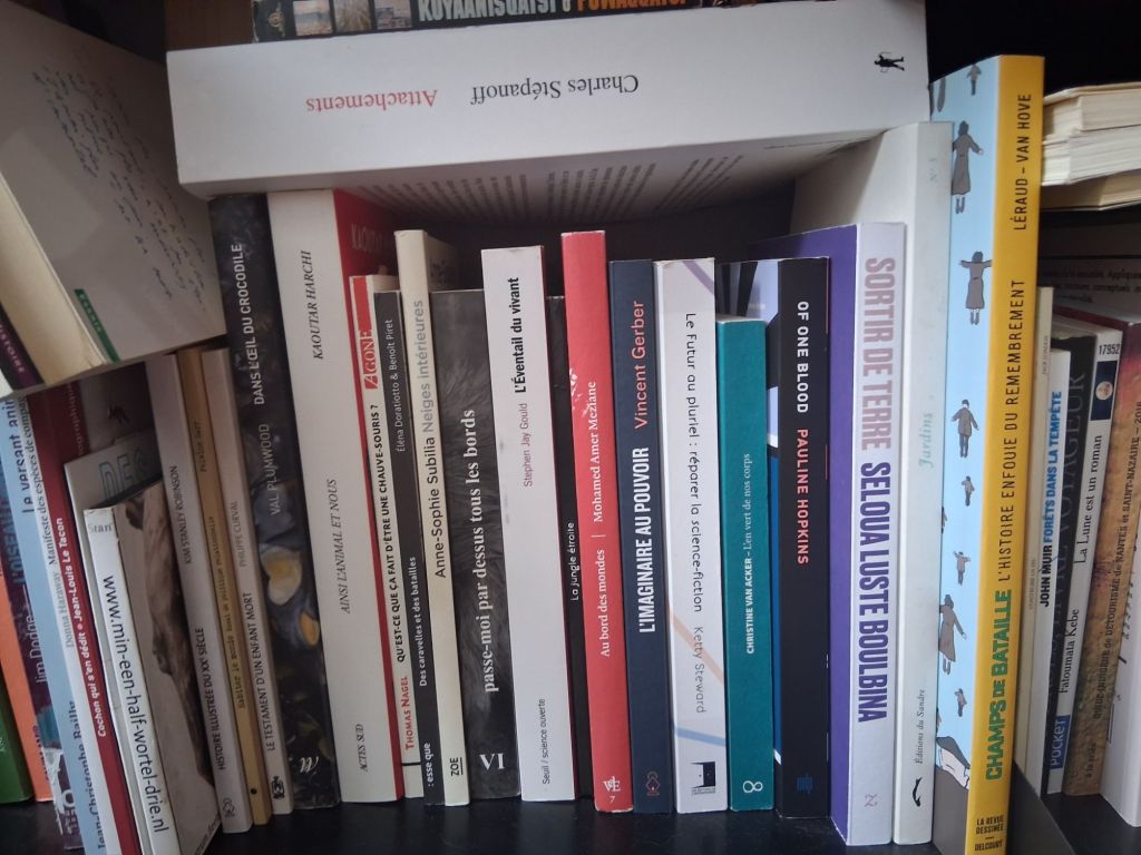 Depuis la chance d’occuper un appartement qui est mien, des étagères ont pris une place importante dans l’espace et le temps…